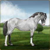 Name: X The Great PromiseAge: 0 Mare Color: Blue Roan Frost Appaloosa Breed: Knabstrupper Foal Rating: P/E/P Bravery Rating: Sub-Par |  |