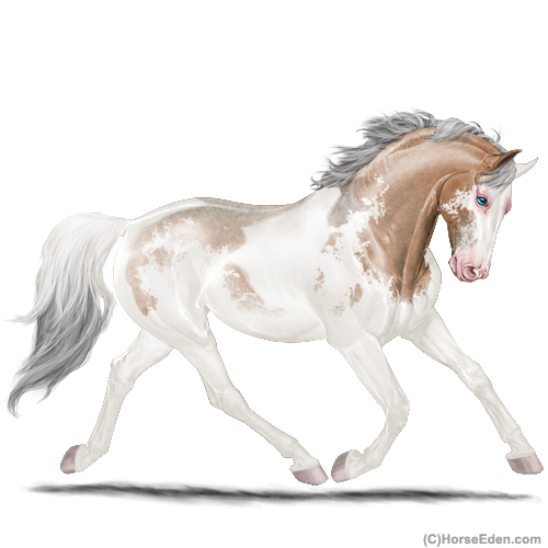 Color: Silver Light Bay Roan Dun Tobiano Sabino Frame