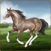 Name: Full Moon MarauderAge: 0 Stallion Color: Buckskin Pearl Sabino Breed: Thoroughbred Foal Rating: E/E/E Bravery Rating: Sub-Par |  |