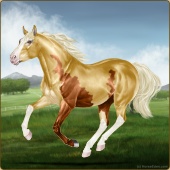 Name: ^^Lady Tano- ChimeraAge: 0 Mare Color: Palomino Sabino Breed: Appendix Quarter Horse Foal Rating: E/W/E Bravery Rating: Sub-Par |  |