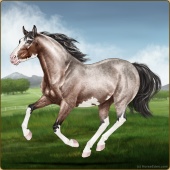 Name: (EEE) MarlowAge: 0 Mare Color: Blue Roan Sabino Breed: Thoroughbred Foal Rating: E/E/E |  |