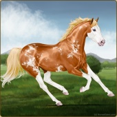 Name: ℳ Polar Sun | EEEAge: 0 Mare Color: Flaxen Chestnut Splash White Sabino Breed: Thoroughbred Foal Rating: E/E/E |  |