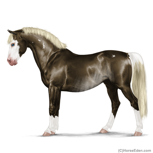 Color: Dark Flaxen Liver Chestnut Sabino Rabicano Frame Appaloosa