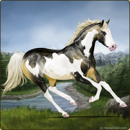 Color: Gold Dun Splash White Rabicano Frame