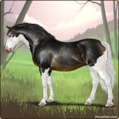 Name: NatailiaAge: 0 Mare Color: Smokey Black Splash White Breed: Irish Draught Horse Foal Rating: E/P/P Bravery Rating: Sub-Par |  |