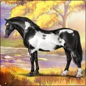 Name: Goa (EPP-A)Age: 0 Mare Color: Black Tobiano Splash White Breed: Irish Draught Horse Foal Rating: E/P/P Bravery Rating: Average |  |