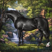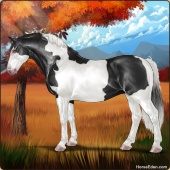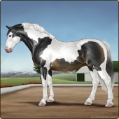 Name: Jinxy (EEE-A)Age: 0 Mare Color: Black Tobiano Breed: Irish Draught Horse Foal Rating: E/E/E Bravery Rating: Average |  |