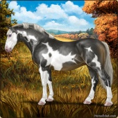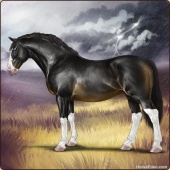 Name: Cain (PEP)Age: 0 Stallion Color: Smokey Black Tobiano Splash White Breed: Irish Draught Horse Foal Rating: P/E/P |  |