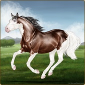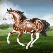 Name: Cosmic Bombshell BRSAge: 0 Mare Color: Mahogany Bay Splash White Sabino Breed: Appendix Quarter Horse Foal Rating: E/E/E Bravery Rating: Sub-Par |  |