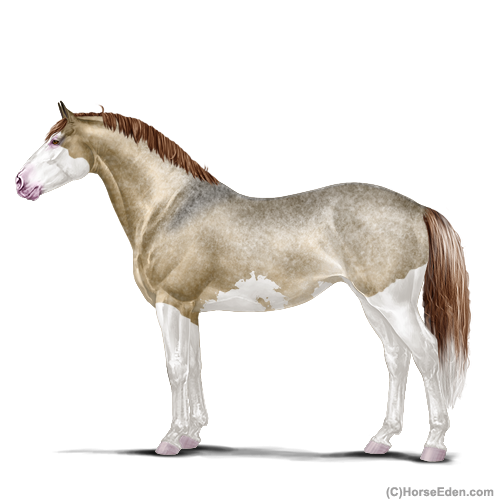 Color: Dark Red Roan Dun Splash White Sabino Rabicano