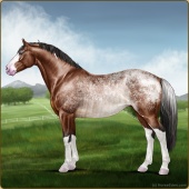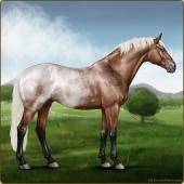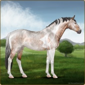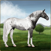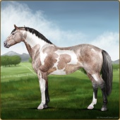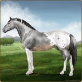 Name: Drifting OneAge: 0 Mare Color: Silver Bay Roan Varnish Blanket Appaloosa Breed: Irish Sport Horse Foal Rating: A/A/A |  |
