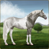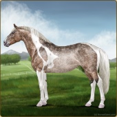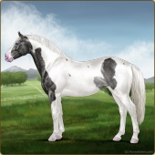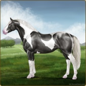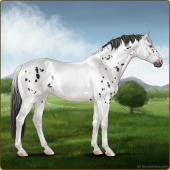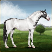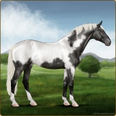 Name: ღ Mighty Powers SSSAge: 0 Stallion Color: Silver Black Tobiano Varnish Blanket Appaloosa Breed: Irish Sport Horse Foal Rating: S/S/S |  |