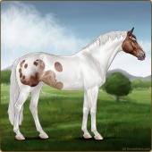 Name: ღ Damion AAAAge: 0 Stallion Color: Silver Bay Tobiano Rabicano Frame Varnish Snowflake Appaloosa Breed: Irish Sport Horse Foal Rating: A/A/A |  |