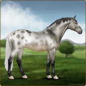 Name: Aurelius +2Age: 0 Stallion Color: Blue Roan Frost Appaloosa Breed: Knabstrupper Foal Rating: W/W/E |  |