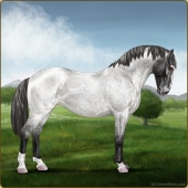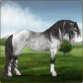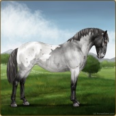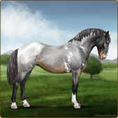 Name: Blue Roan ChristmasAge: 0 Stallion Color: Blue Roan Varnish Blanket Appaloosa Breed: Knabstrupper Foal Rating: E/E/W Bravery Rating: Sub-Par |  |