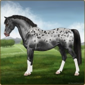 Name: IR SharpayAge: 0 Mare Color: Smokey Blue Roan Varnish Appaloosa Breed: Knabstrupper Foal Rating: E/W/W |  |