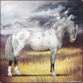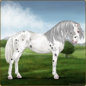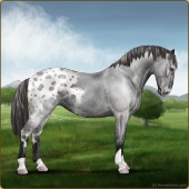Name: ☩ Cloudburst Zz prlAge: 0 Stallion Color: Silver Roan Varnish Blanket Appaloosa Breed: Knabstrupper Foal Rating: E/E/E Bravery Rating: Sub-Par |  |