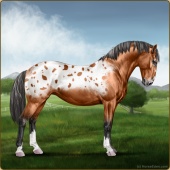 Name: ♃ 34741699 [EWW]Age: 0 Stallion Color: Mahogany Bay Varnish Appaloosa Breed: Knabstrupper Foal Rating: E/W/W |  |