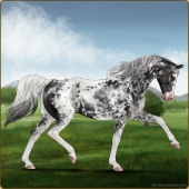 Name: BB Speckled PandaAge: 0 Stallion Color: Smokey Blue Roan Sabino Breed: Anglo Arabian Foal Rating: E/E/E |  |