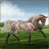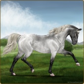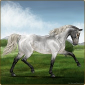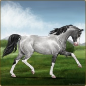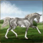 Name: HC Rainonme (EEE)Age: 0 Stallion Color: Silver Smokey Roan Breed: Anglo Arabian Foal Rating: E/E/E |  |