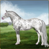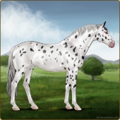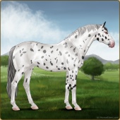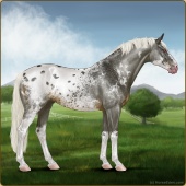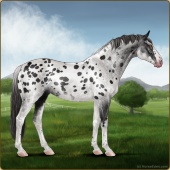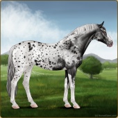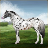Name: 1/6 SpottyAge: 0 Stallion Color: Smokey Black Sabino Rabicano Near Leopard Appaloosa Breed: Irish Sport Horse Foal Rating: E/E/E |  |