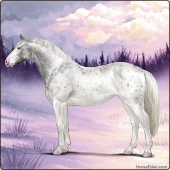 Name: 1/6 EEE AppyAge: 0 Stallion Color: Silver Roan Sabino Rabicano Varnish Leopard Appaloosa Breed: Irish Sport Horse Foal Rating: E/E/E |  |
