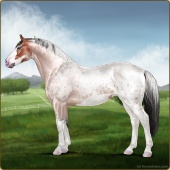 Name: Ⓖ Anshulan (EWE)Age: 0 Mare Color: Silver Smokey Roan Sabino Rabicano Varnish Blanket Appaloosa Breed: Irish Sport Horse Foal Rating: E/W/E |  |
