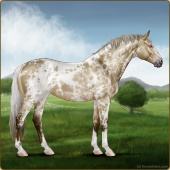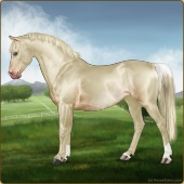 Name: HF Murcia - #67Age: 0 Mare Color: Classic Creme Rabicano Breed: Sport Pony Foal Rating: W/A/Sub |  |