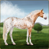 Name: Shira X Vecto 173Age: 0 Stallion Color: Flaxen Red Roan Dun Tobiano Splash White Sabino Frost Appaloosa Breed: Irish Sport Horse Foal Rating: E/W/W |  |
