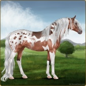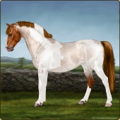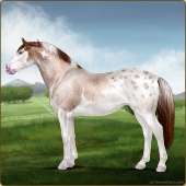 Name: Shiroxy (EEE 1/25)Age: 0 Mare Color: Red Roan Tobiano Appaloosa Breed: Sport Pony Foal Rating: E/E/E |  |