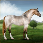 Name: Arctic FuryAge: 0 Mare Color: Roan Grullo Splash White Breed: Irish Sport Horse Foal Rating: E/W/E Bravery Rating: Sub-Par |  |