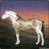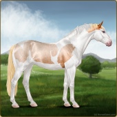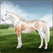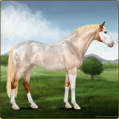 Name: 𝓡 Shiloh PWEAge: 0 Mare Color: Palomino Roan Splash White Sabino Breed: Irish Sport Horse Foal Rating: P/W/E |  |