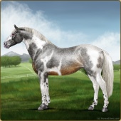 Name: Shere Khan EEEAge: 0 Stallion Color: Roan Grullo Tobiano Blanket Appaloosa Breed: Sport Horse Foal Rating: E/E/E |  |