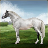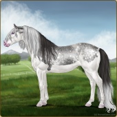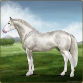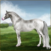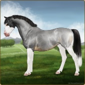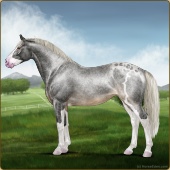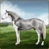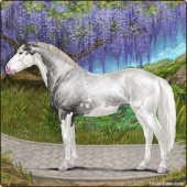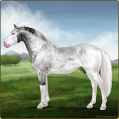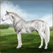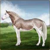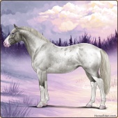 Name: Ⓖ Miley Cyrus (EEW)Age: 22 Stallion Color: Silver Roan Splash White Breed: Irish Sport Horse Foal Rating: E/E/W |  |