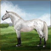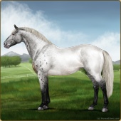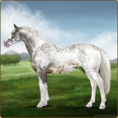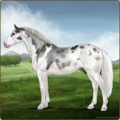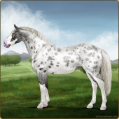 Name: Velvet Crescent (EEE)Age: 0 Stallion Color: Silver Roan Splash White Blanket Appaloosa Breed: Irish Sport Horse Foal Rating: E/E/E |  |