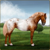 Name: ☩HornetAge: 0 Mare Color: Chestnut Snowflake Appaloosa Breed: Knabstrupper Foal Rating: A/E/W |  |