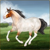 Name: Catching Fire [EEE]Age: 5 Mare Color: Roan Grullo Rabicano Breed: Appendix Quarter Horse Foal Rating: E/E/E |  |