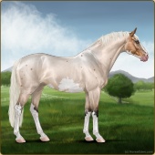 Name: If Im Honest Age: 0 Mare Color: Silver Buckskin Roan Sabino Blanket Appaloosa Breed: Sport Horse Foal Rating: E/E/E |  |