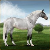 Name: EEE | Hennessey's SoulAge: 19 Gelding Color: Silver Smokey Roan Splash White Rabicano Leopard Appaloosa Breed: Sport Horse Foal Rating: E/E/E Bravery Rating: Sub-Par For Sale! |  |