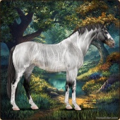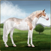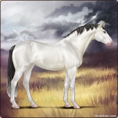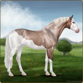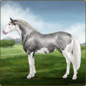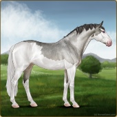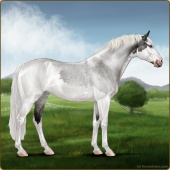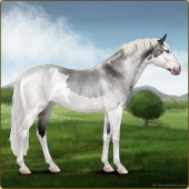 Name: War of Spirits ECAge: 0 Mare Color: Silver Roan Splash White Sabino Breed: Irish Sport Horse Foal Rating: E/W/W |  |