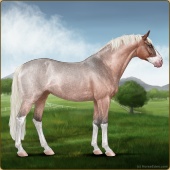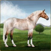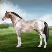 Name: Water or Spirits ECAge: 0 Mare Color: Silver Roan Sabino Breed: Irish Sport Horse Foal Rating: E/W/W |  |