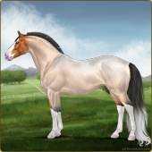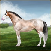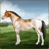 Name: ℙℍ Hairo ZAge: 0 Stallion Color: Golden Buckskin Roan Splash White Breed: Sport Horse Foal Rating: E/W/W |  |