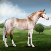 Name: 36519403 EEEAge: 0 Gelding Color: Light Bay Roan Dun Splash White Breed: Sport Horse Foal Rating: E/E/E Bravery Rating: Sub-Par |  |