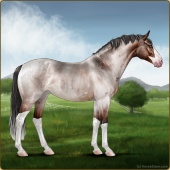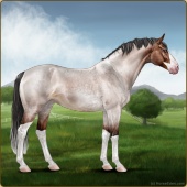 Name: Henne X Krato 179Age: 17 Mare Color: Silver Roan Grullo Breed: Sport Horse Foal Rating: W/E/E |  |