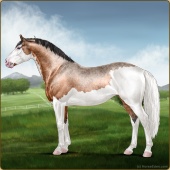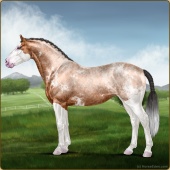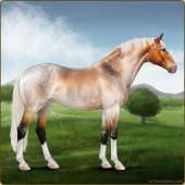 Name: Ezekiel❇️ Age: 15 Stallion Color: Silver Blood Bay Roan Dun Splash White Breed: Sport Horse Foal Rating: W/W/W For Breeding! |  |