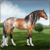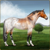 Name: Henne X LEDra 178Age: 18 Stallion Color: Copper Bay Roan Rabicano Blanket Appaloosa Breed: Sport Horse Foal Rating: E/W/W |  |