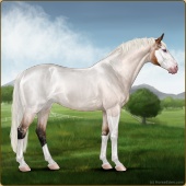 Name: Henne X Doria 173Age: 0 Mare Color: Silver Light Bay Roan Splash White Breed: Sport Horse Foal Rating: E/W/W |  |