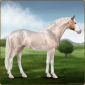Name: μ AmarisAge: 0 Mare Color: Silver Roan Tobiano Splash White Breed: Sport Horse Foal Rating: E/W/W |  |