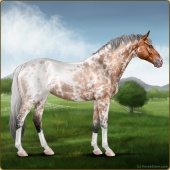 Name: Richard Hennessy WWW 1-8Age: 17 Stallion Color: Silver Mahogany Bay Roan Varnish Blanket Appaloosa Breed: Irish Sport Horse Foal Rating: W/W/W Bravery Rating: Sub-Par |  |