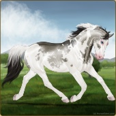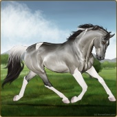 Name: Vitiligo BatonAge: 0 Stallion Color: Grullo Tobiano Breed: Warmblood Foal Rating: P/E/P |  |